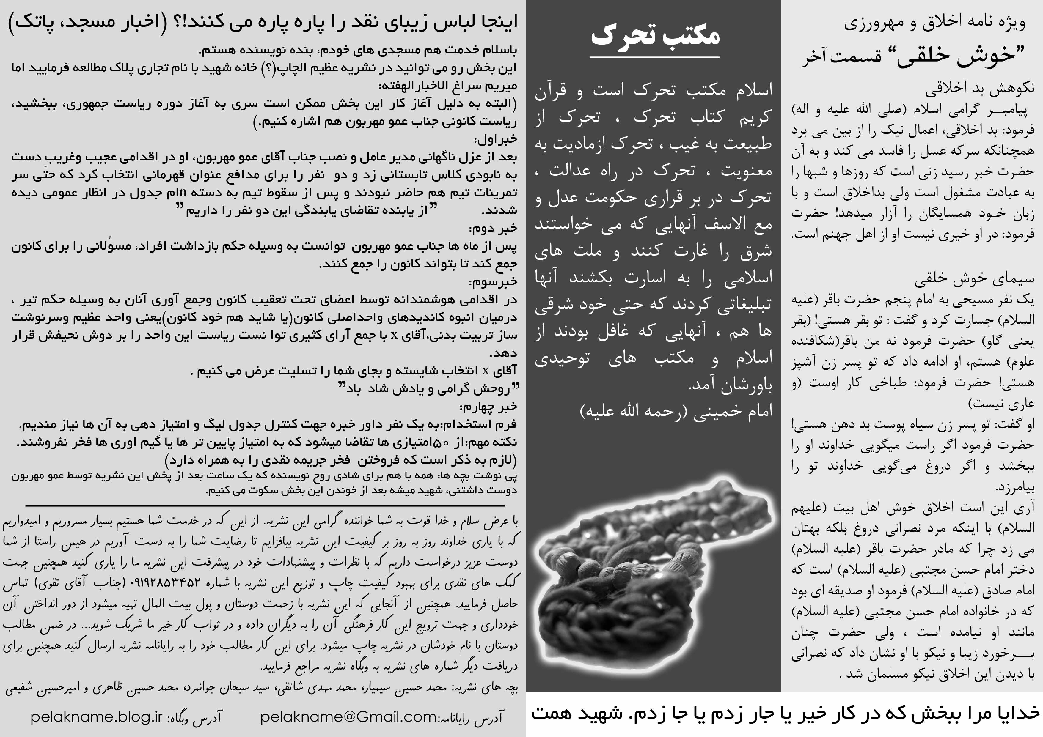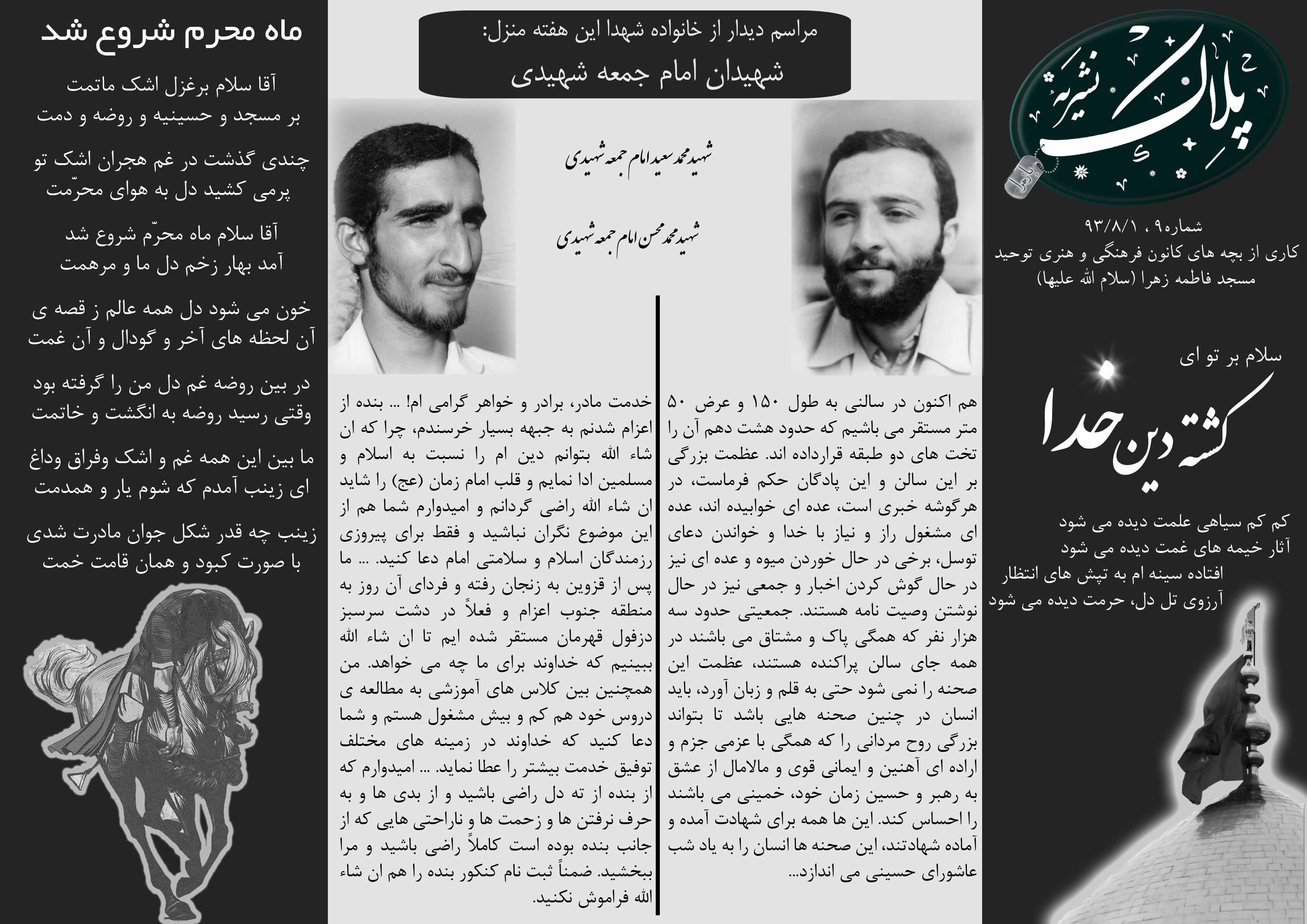 در این اضطراب بود که چطور با مادر خداحافظی کند و آن را تنها بگذارد و برود.می دانست شاید نه به حتم که دیگربرگشتی در کار نیست و این، اولین و آخرین خداحافظی او باشد.به مادر نگاه کرد که سینی آب و قرآن در دست داشت و به تماشای او ایستاده بود.به قد وبالای پسر رشیدش که حالا برای خودش مردی شده است مرد جنگی .در فکر بود اینکه آخرین جملاتی که مادر به او خواهد گفت چیست؟مواظب خودت باش پسرم،ایشالا جنگ زود تموم شه برگردی خونه ، اینقدر چشمم به این در میمونه تا برگردی ؟،هر وقت تونستی مرخصی بگیر و زود بیا خونه ، اگه تونستی زنگ بزن خبری از خودت بده ، یا اینکه میشه یه چند روز دیر تر بری جبهه و ...! با همین فکرها از زیر قران رد شد . برگشت به سمت مادر و خداحافظی کرد .مادر گفت : خداحافظ ، سلام مرا به حضرت زهرا (س ( برسان.